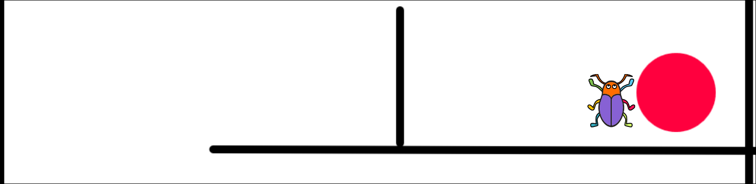 Der Käfer wird über die Pfeiltasten der Tastatur gesteuert. Wenn der Käfer den schwarzen Rand berührt, wird er zurückgesetzt. Wenn er den roten Punkt berührt, hast du gewonnen.